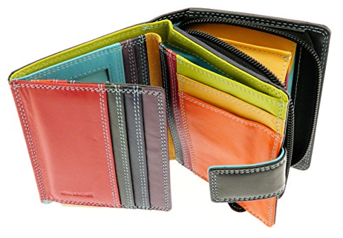 - Ladies versatile super soft real leather wallet purse & credit card holder with zip up coin purse / section - holds 8 credit cards - black & multi-colour.