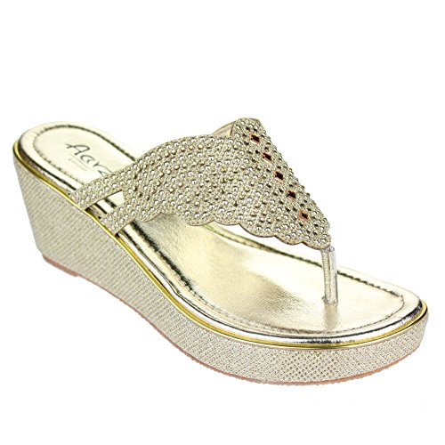 AARZ LONDON offer Women Ladies Diamante Toe Post Slip On Wedge Heel Evening Casual Party Gold Sandals Shoes Size 9. This awesome product currently limited units, you can buy it now for £24.99, You save -